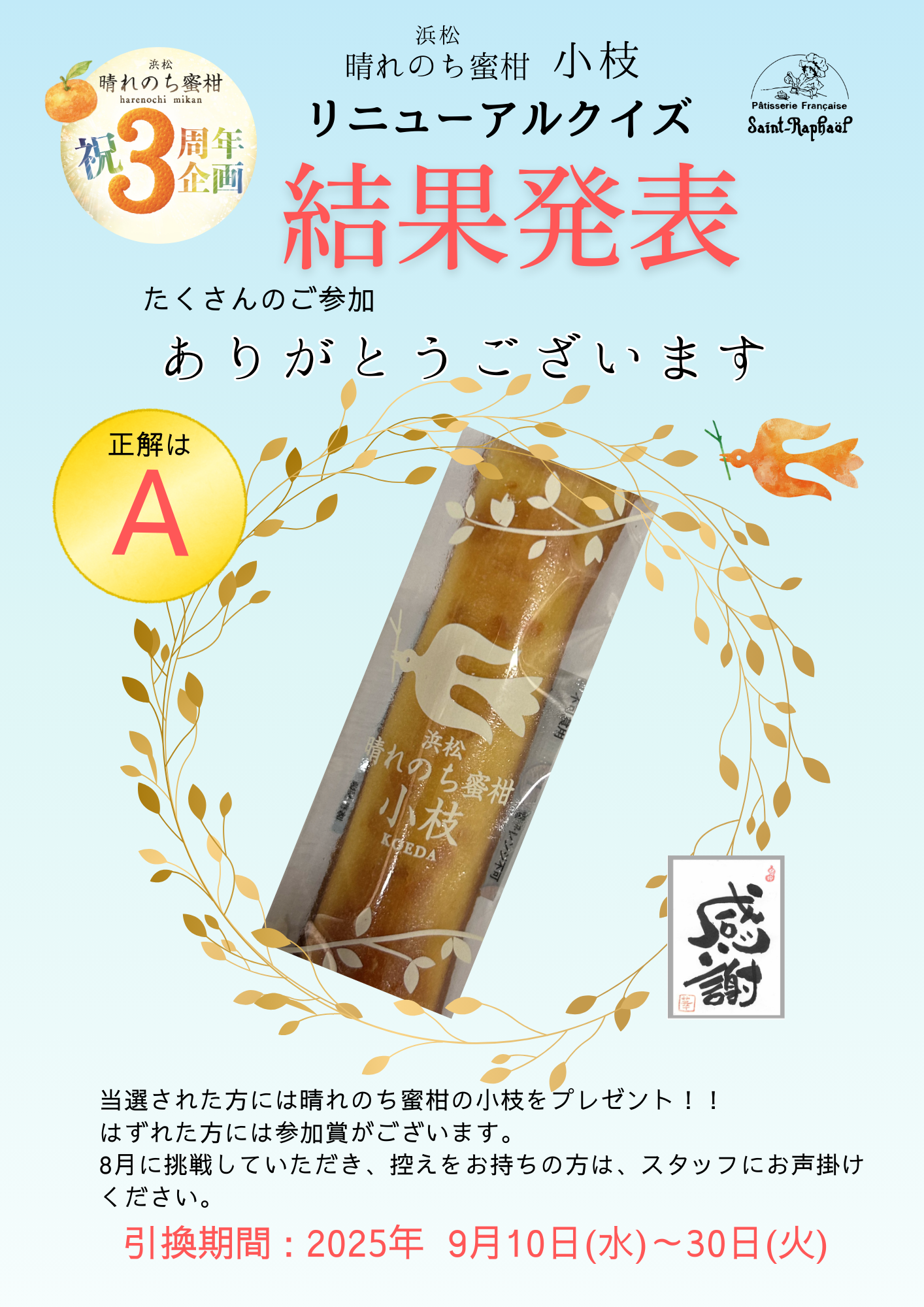 晴れのち蜜柑の小枝リニューアルクイズ結果発表